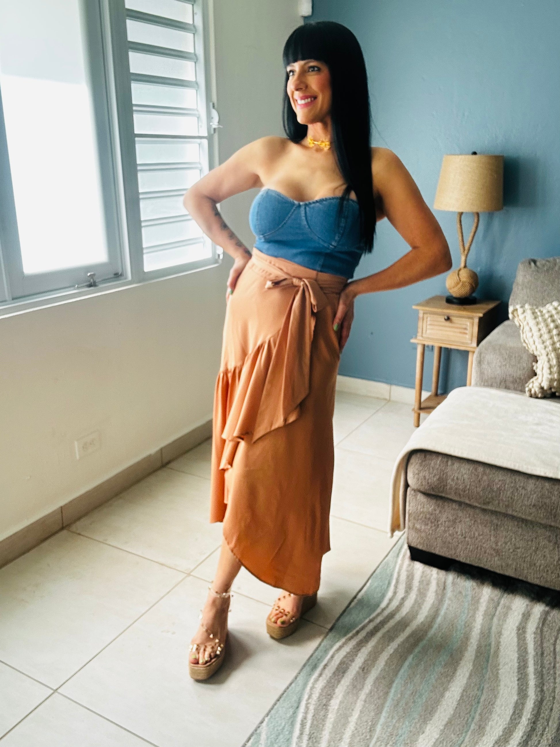 Usando talla: S/M - Medidas: 37”-29”-41” - Estatura: 5’6”
