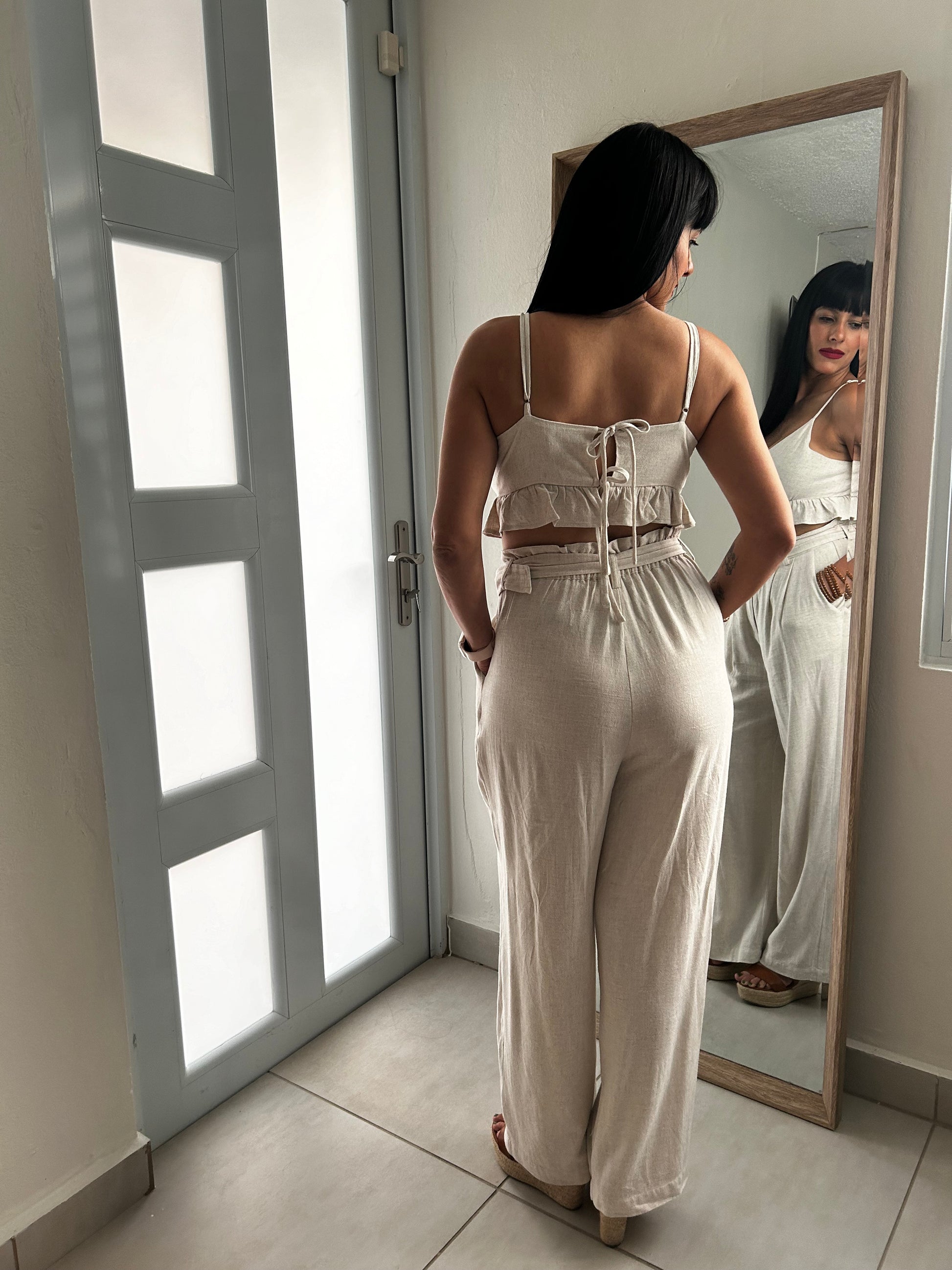 - pantalón incluye correa y elástico en la parte trasera de la cintura